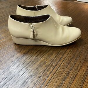 Step out in style with these elegant women's zipper-side shoes. Perfect for any occasion, these shoes offer both comfort and sophistication. Good condition. Some flaws; see last three pictures.