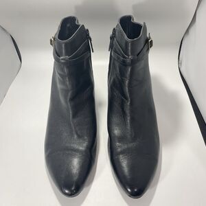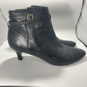 Cole Haan Elinor Side Zip Short Boot Black Leather Sz 9 Heel