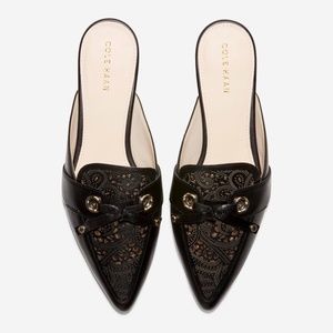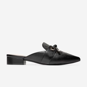 Cole Haan Emily Black Leather Mule Flat Designer shoes