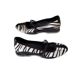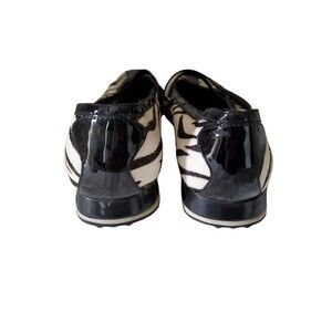 Cole Haan Nike slides. Awesome black & white zebra with top Velcro closure. May have some marks or scuffs from wear. Soles in good condition.
