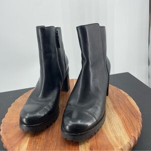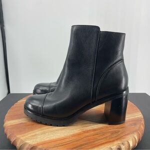 Cole Haan Foster Lug Sole heel ankle Booties 7.5 black leather cap toe