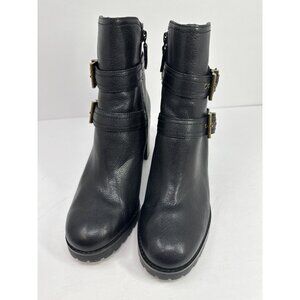 Cole Haan Foster Size 9.5 Leather Double Buckle Block Heel Booties Zip