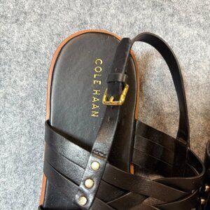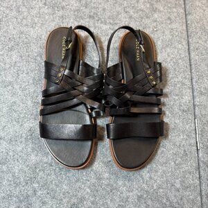 Cole Haan Francie W21146 Womens US 9 B Casual Sandals Black Leather Strappy Flat.
