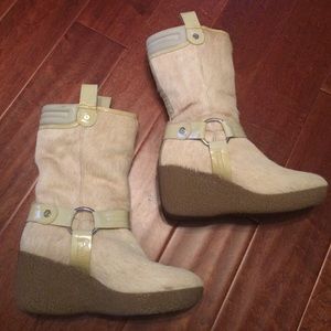 Cole Haan Fur Winter Boots with heel: only worn once or twice, very good condition. Added picture of the bottom to show that they've barely been used. Very warm and comfortable! $165 OBO