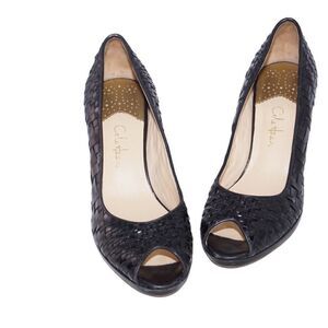 Cole Haan Genevieve Black Woven Peep Toe Pumps, Size 7.5
