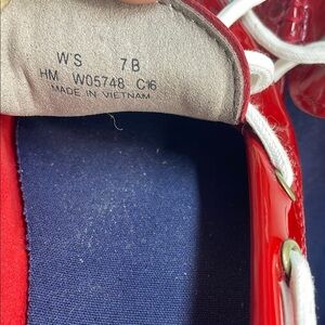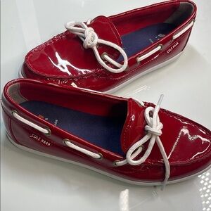 Vibrant red loafers by Cole Haan. Accented with white laces and trim.