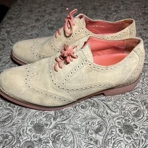 Elevate your shoe collection with these stylish Cole Haan Gramercy Oxford flats. Crafted from premium ivory suede and featuring a slip-resistant sole, these shoes are perfect for travel and casual occasions. The lace-up closure ensures a secure fit while the Cole character adds a touch of personality.