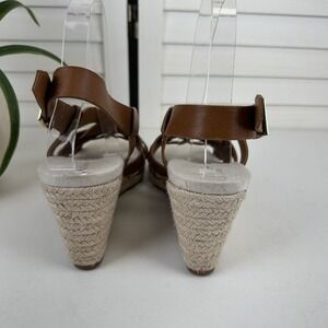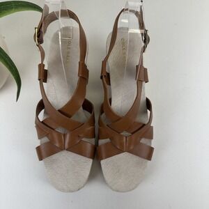 Cole Haan Grand 360 Crystal Espadrille Wedge Sandals Brown Leather Shoes Size 8B