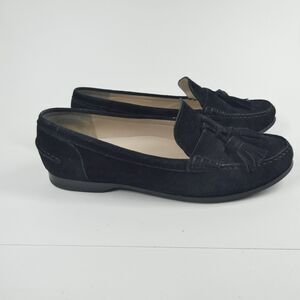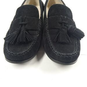 Cole Haan Grand OS loafers. Style W08102, which I believe was sold as Emmons. Black suede finish with tassle detail. Size 8B. Good used condition, some wear but still lots of life left.