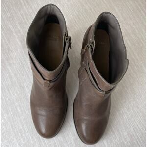Cole Haan Grand OS Brown Leather Ankle Boot Strap Buckle Block Heel Bootie 7.5 B