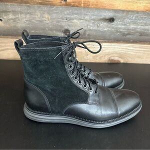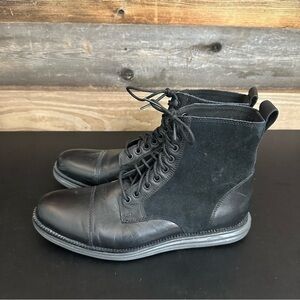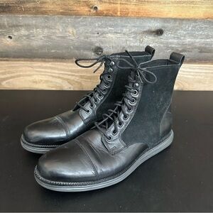 Cole Haan Grand OS Cap Toe Black Leather Laced Mens Military-like Boots Sz 9M