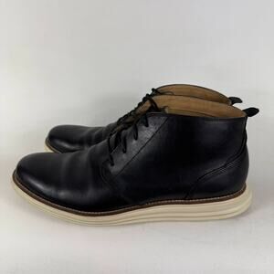 Cole Haan Grand OS Chukka Boots Men's 11 Black Leather Lace-Up Round Toe Ankle