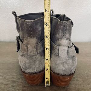Cole Haan Grand OS Women’s size 9.5 gray suede side buckle ankle boots in excellent preowned condition, very minor wear, clean nonsmoking home.