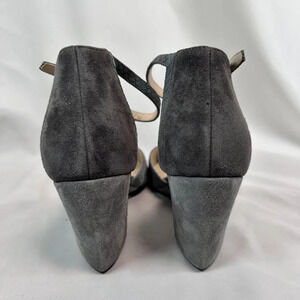 Cole Haan Grand OS Lara Size 9.5 Suede Wedge Heels Ankle Strap Snakeskin Gray
