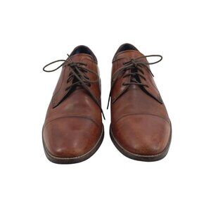 Classic Cole Haan Men's Oxford Shoes featuring cap toes, smooth brown leather uppers, and lace-up design. Perfect for a professional or formal setting, combining style and comfort.