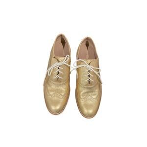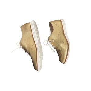 Cole Haan Grand OS Metallic Gold Wingtip Oxford Shoes Women's Size 7.5B Glam
