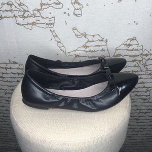 Cole Haan Grand OS Size 6.5 Black Patent Toe Bow Ballet Flats Pointed Toe