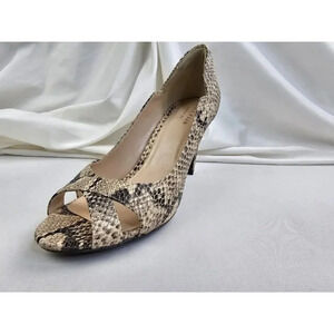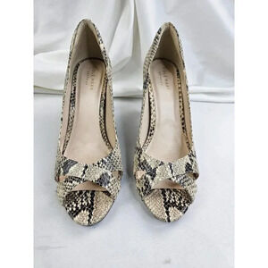 Cole Haan Grand OS Size 7.5B Women's Snake Print Peep Toe Slip On Pump Heels