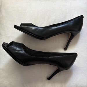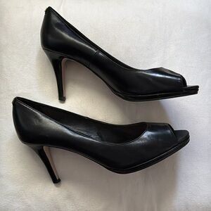 Cole Haan Grand OS Sz 8 black leather open toe slide on shoes