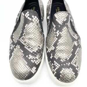 Cole Haan Grand Series Womens 10 Snakeskin Print Sneaker Black Gray Slip On