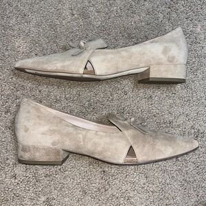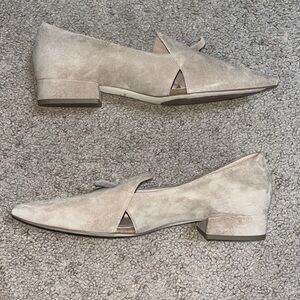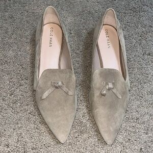 Cole Haan Grand Viola Skimmer Flat Suede Light Whiskey 10. W27674. Make a chic statement in our Viola Skimmer. These versatile slip on shoes are perfect for dressing up or styling more casually. Plus, the cut out designs on the side provide breathability and knotted accent on the upper provides a sophisticated detail that pairs with everything. Slip-on skimmer crafted in suede uppers. Fully lined for maximum comfort. Knotted details on upper for added craft. Padded sock lining. Great pre-owned condition. No stains/flaws. Smoke/pet free home. Offers welcome. Bundle & save. Ship same/next day. Packaged w/ care.