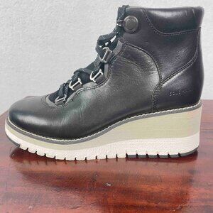 Cole Haan GrandExplore Waterproof Laceup Wedge Boots in Black Womens Size 6B