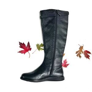 Cole Haan Grand.OS Black Textured Leather Tall Riding Boots | Classic Equestrian