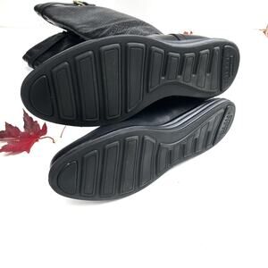cole haan grand.os boots, black leather riding boots, tall equestrian boots, designer riding boots, classic black knee boots, luxury leather boots, flat tall boots women, chic fall footwear, equestrian chic, minimalist wardrobe staples, timeless cold weather boots, black tall zip boots, modern classic boots, capsule wardrobe shoes, cole haan grand os comfort