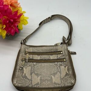 Cole Haan Gray Cream Leather Snakeskin Shoulder Bag MCB6076C