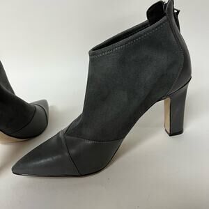 Cole Haan Gray Seude Heeled Ankle Boots Pointed Toe Two Tone Leather Size 7 $220
