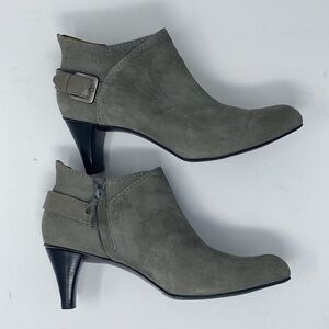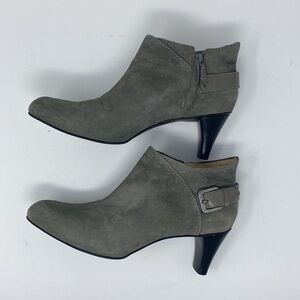 Cole Haan Gray Suede Buckle Zip Heels Booties Size 10