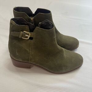 Cole Haan Haidyn Dark Olive Green Suede Ankle Boots Size 7B