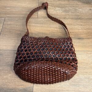 Elevate your style with this sophisticated Cole Haan handbag. Crafted from high-quality brown leather with a unique basket weave design, this bag exudes elegance and charm. Perfect for everyday use or special occasions.