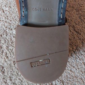 Cole Haan Harrison Grand 2.0 Monk Strap Cap Toe in British Tan, men's US size 9M (M for medium, or regular fit). Light wear, with plenty of tread and stock on the sole. Some light scuffmarks on the heels. No cracking or fading of the leather. 100% leather with rubber sole.