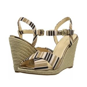 Cole Haan Hart Espadrille Wedge Sandals - Black and Tan, Leather, Size 9B, NWOB