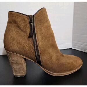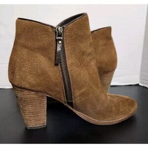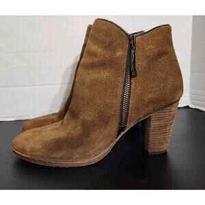 Cole Haan Hayes Bootie Java Brown Suede Stacked Booties Womens Size 8 B. Genuine Leather. Both side zipper closure. Great used condition see photos. Smoke-free home. Check out my other items I will combine shipping