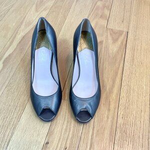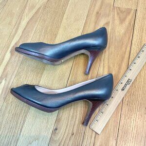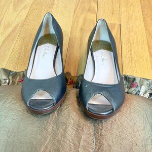 Cole Haan Pumps Leather Peep Toe High Heels in Neutral Olive Green (10)