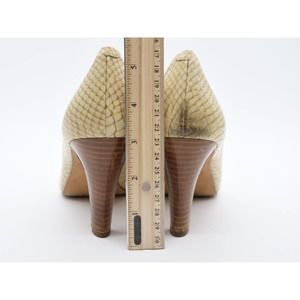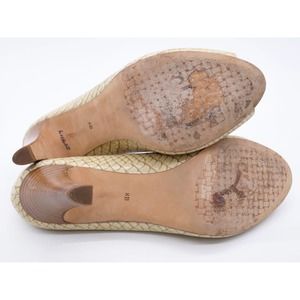 Cole Haan Heels Womens 8 Tan Snake Print Leather Peep Toe Stacked Heel Pumps