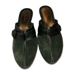 Cole Haan High Heel Mules Clogs Black Suede Leather Size 6.5B