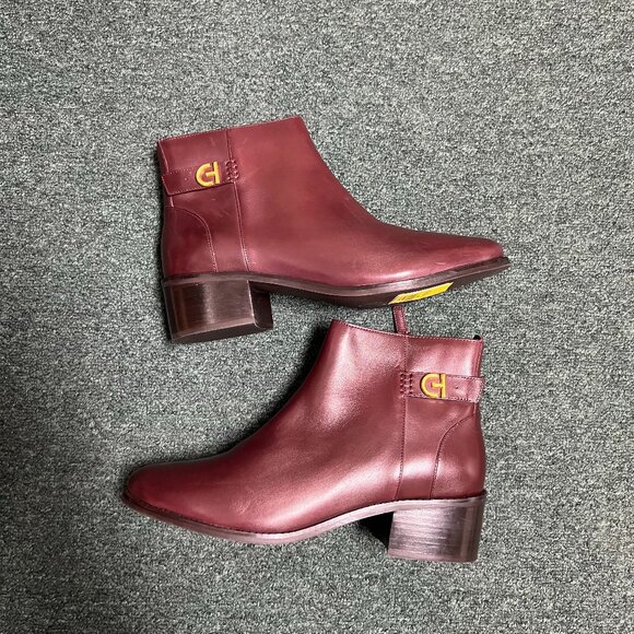 Cole Haan Holis Buckle Bootie Womens Size 11 B Burgundy Leather Ankle Boots NWT