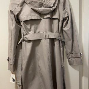 The ultimate all-season coat, this water-resistant trench has all the classic details you'd expect plus a removable hood and front and back wind shields.