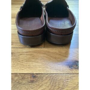 The Cole Haan Horsebit Loafers Flats Shoes in women's size 8.5N are a stylish and comfortable option for various occasions such as travel, casual wear, workwear, and business meetings. Made of brown leather with an almond toe shape and slip-on closure, these loafers feature a lightweight design, comfort insole, and rubber outsole for durability. The handcrafted details and equestrian theme add a touch of elegance to the classic penny loafer style, making them perfect for the summer, fall, and spring seasons. Made in Brazil, these Cole Haan loafers are a quality choice for women looking for a versatile and sophisticated shoe option. **please note there is some light tarnish in the metal as seen in picture.