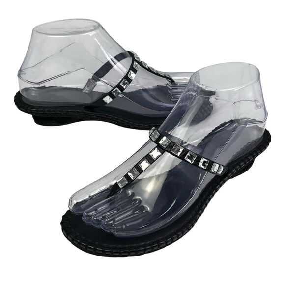 Cole Haan Kalla Thong Flip Flop Sandals Womens 6.5 Black Bejewelled Jewel Bling