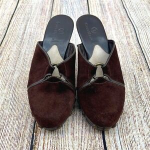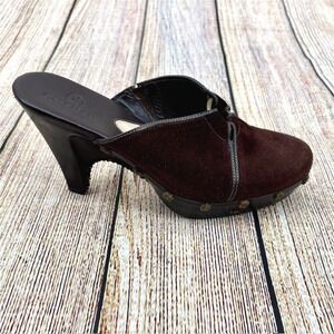 Cole Haan Kenna Women's Size 6 Brown Suede Studded Heeled Platform Mules