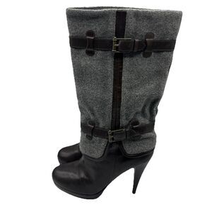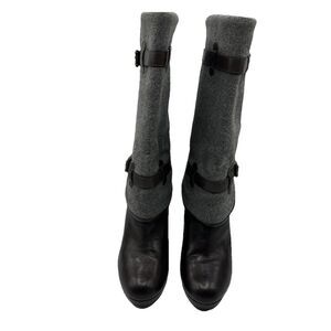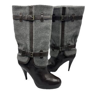 Cole Haan "Kennedy" Brown Leather w/ Gray Flannel Buckle Boots High Heels~9B