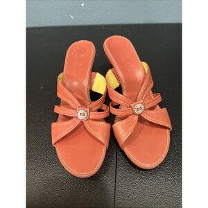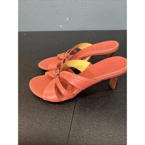 Cole Haan Kitten Heel Sandals Womens 7B Coral Leather Slides Strappy Y2K Charm