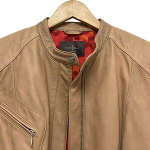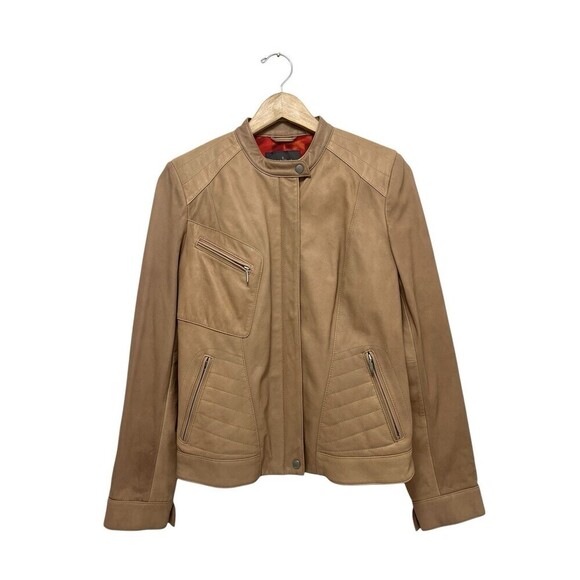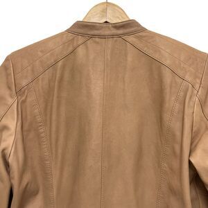Cole Haan Lamb Leather Moto Jacket Zip Front Collarless in Tan Nude Brown Women's size M