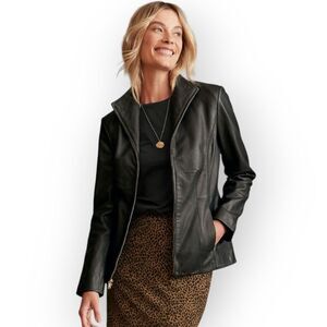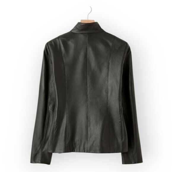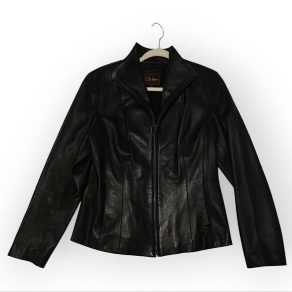 Cole Haan Lamb Skin Black Leather Jacket size 10