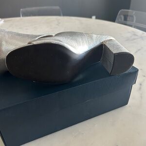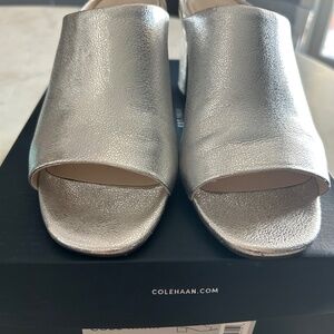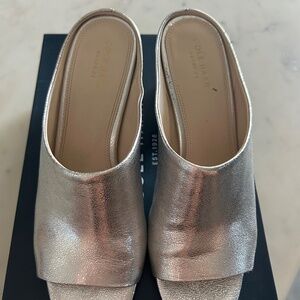 Silver open toe mules w a gold detail Like-new, worn 2x