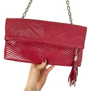 Cole Haan Laury Quilted Patent Leather Purse Handbag Ruby Red Shoulder Bag New